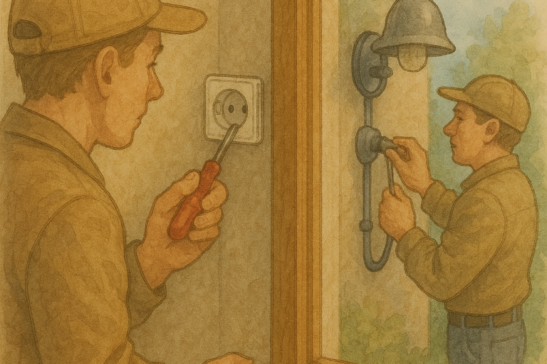 Wir übernehmen Elektroinstallationen im Innen- und Außenbereich – zuverlässig, sicher und individuell auf Ihre Anforderungen abgestimmt. Im Haus sorgen wir für die fachgerechte Installation von Steckdosen, Schaltern, Beleuchtung und Leitungen.
